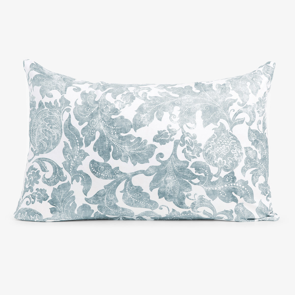 Add a calming coastal touch with the Batik Cushion Cover (Marine Rectangular), featuring a soft blue and white floral batik pattern.