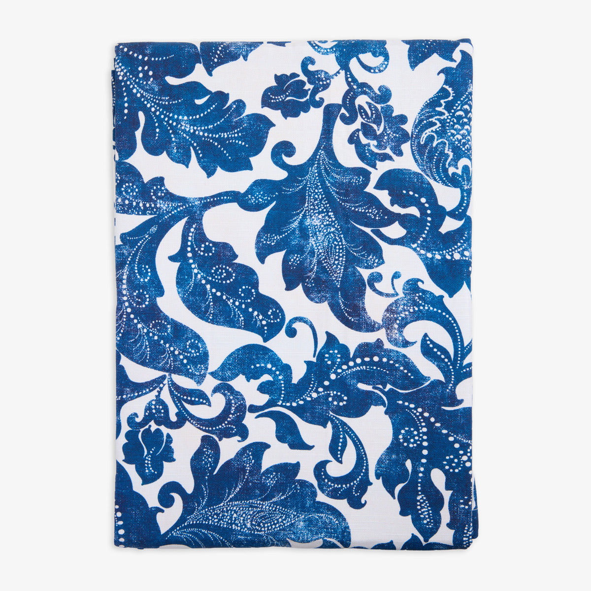 Refresh your table setting with our Batik Tablecloth in Navy, featuring a striking blue and white floral motif inspired by traditional batik printing.