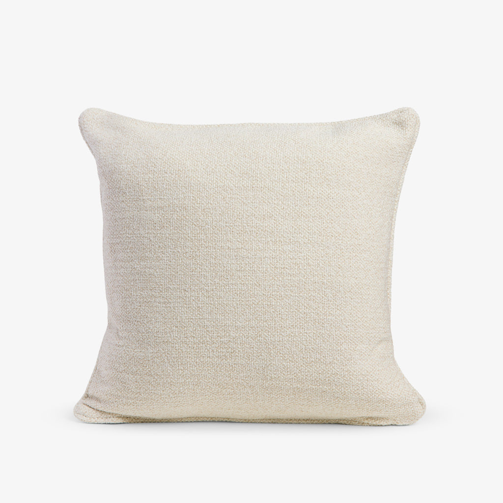 Finished with refined piping along the edges, this 45cm cover brings a tailored touch to any lounge or bedroom setting. Its tactile boucle weave offers dimension while maintaining a neutral tone that pairs effortlessly with prints, stripes, or solids.