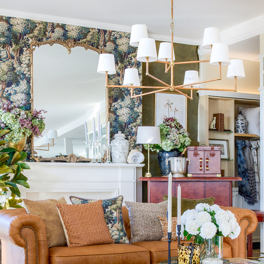 The Bronte Rattan Chandelier with white linen shades combines refined craftsmanship with natural elegance.