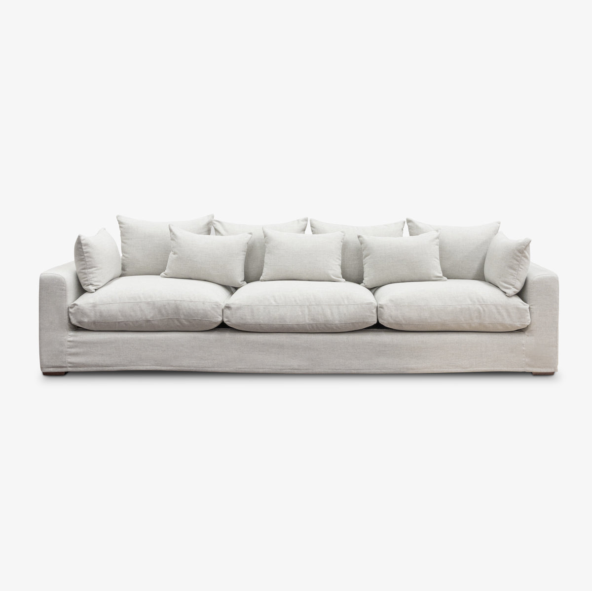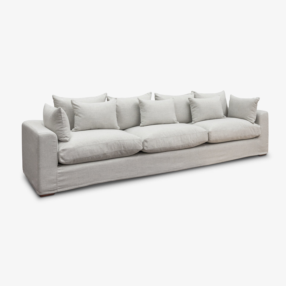 Built with a solid Australian pine frame and finished with a feather and foam cushion fill, the Clara is our premium lounge — designed for comfort, durability and timeless appeal. Upholstered in a soft weave and finished with tailored slipcovers, it comes with nine scatter cushions for a plush, layered look.