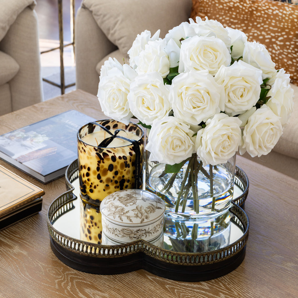 The unique clover-shaped silhouette and mirrored base create a refined focal point, ideal for styling on a coffee table or sideboard. Use this ornate tray to display candles, florals or keepsakes, or as a decorative trinket holder in the kitchen or hallway. A versatile and sophisticated addition to any space.