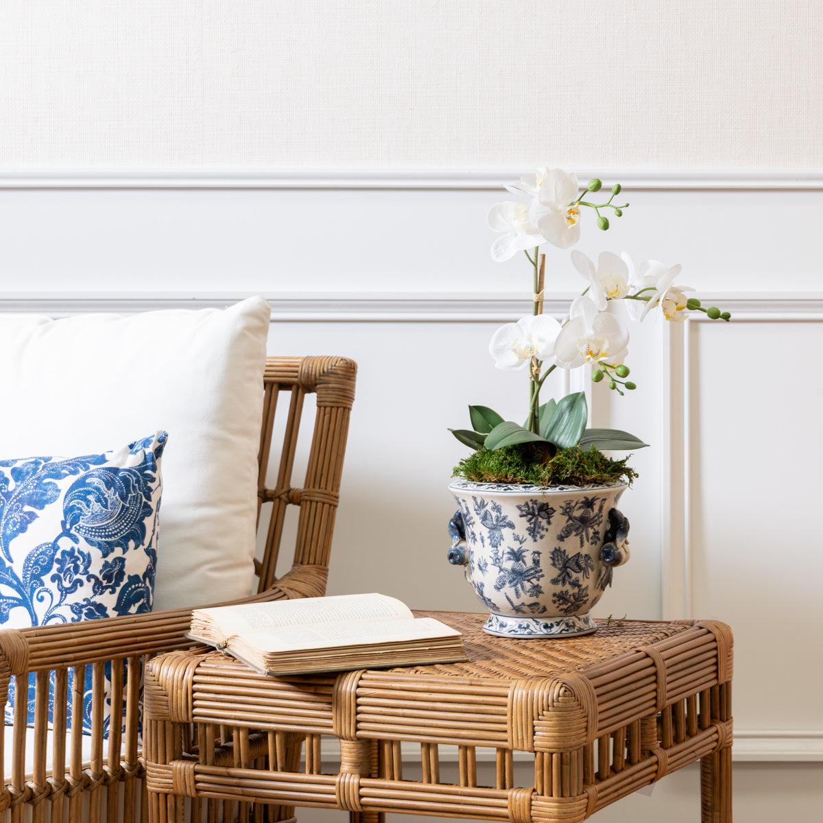 I’m absolutely thrilled with these planters. I purchased a pair of them for a marble mantle. Each one holds a beautiful maiden hair fern. I love the dark indigo print. They look perfect in my heritage home.