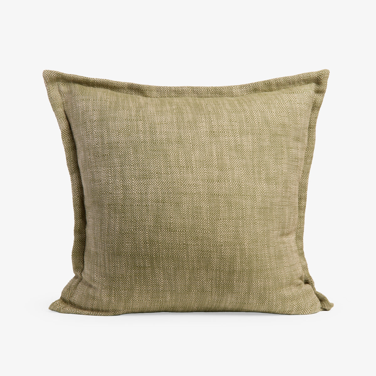 Refine your space with the Edessa Diamond Cushion Cover in Olive Green, crafted from 100% cotton slub with a subtle woven diamond pattern for added texture.