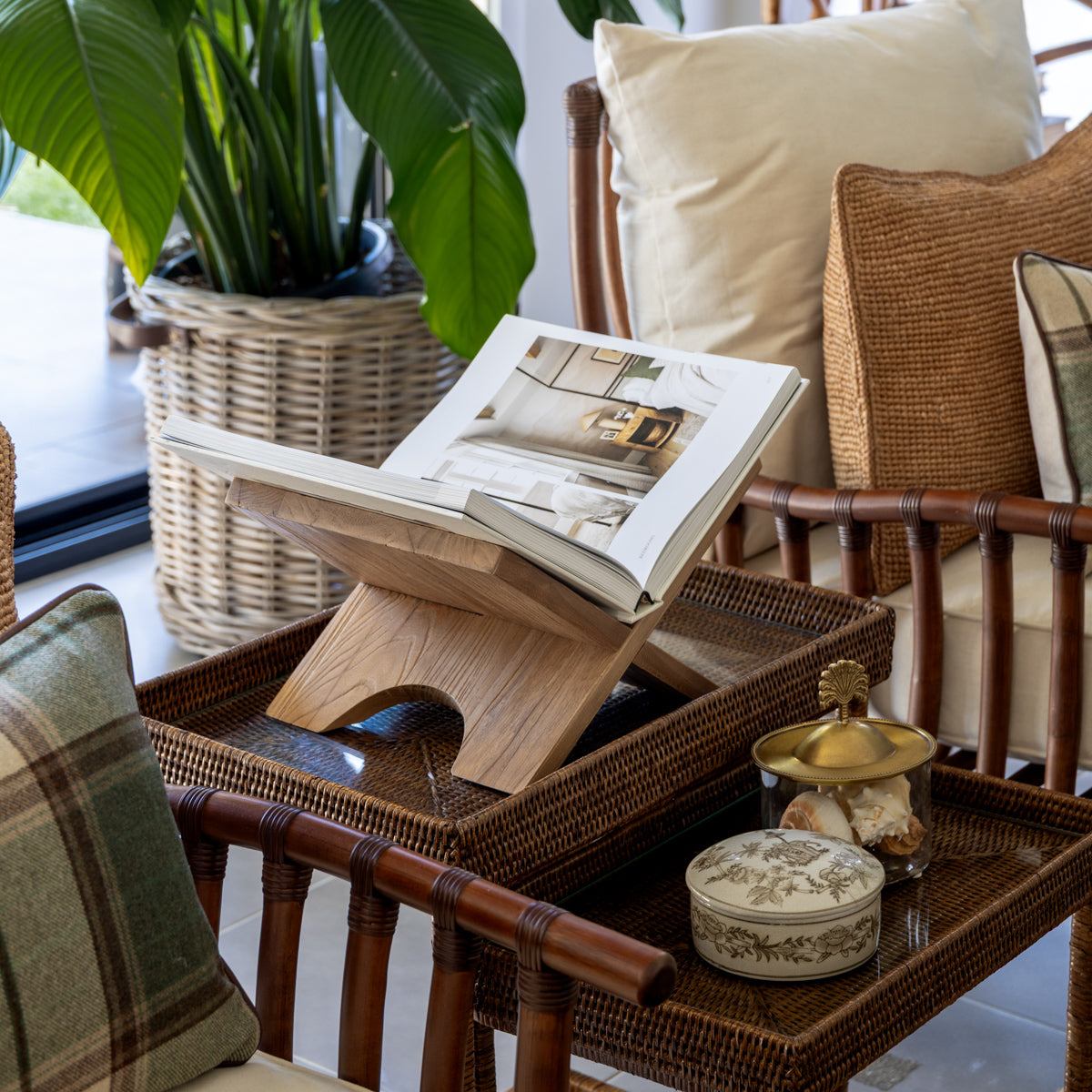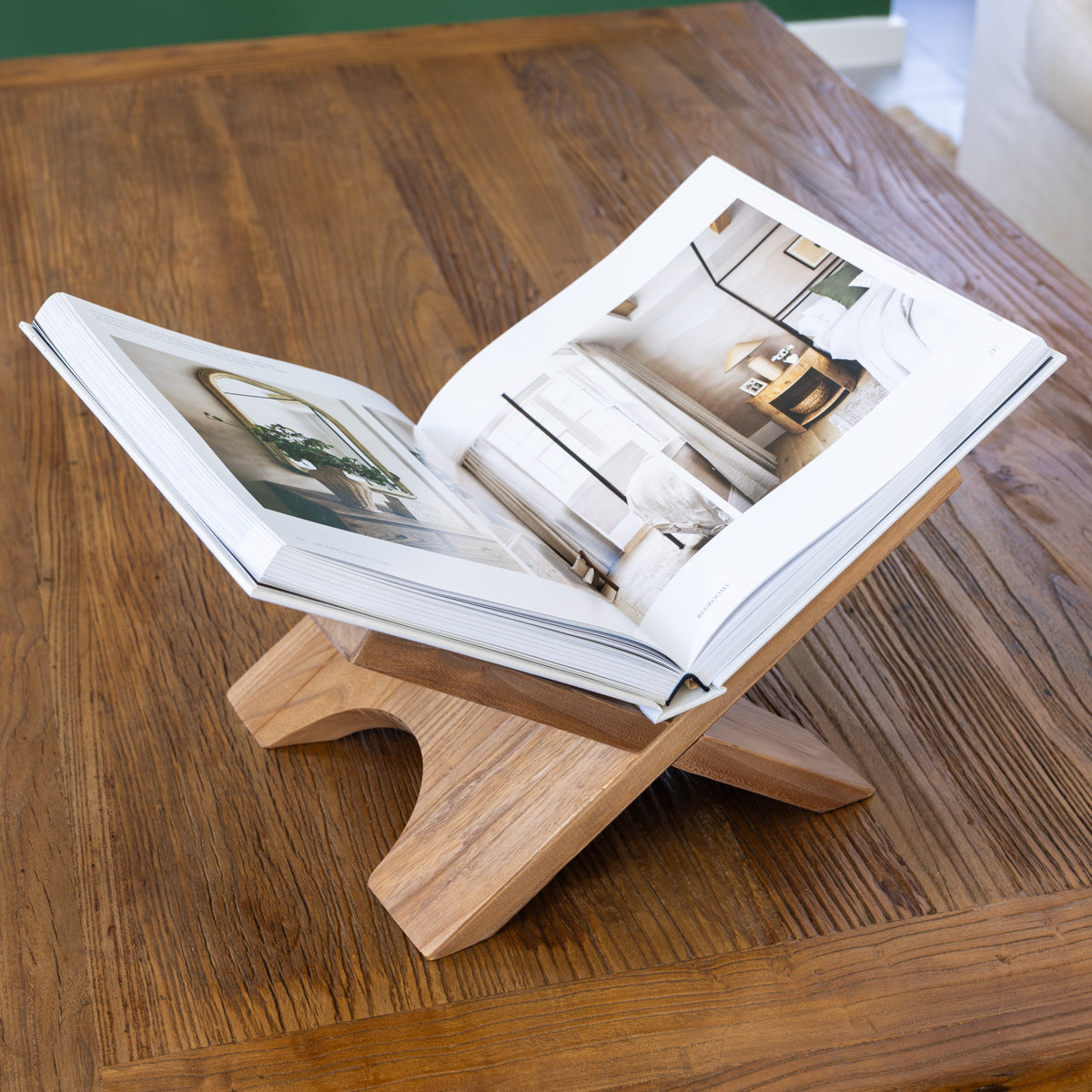 Whether you’re styling a coffee table or console, this natural wood piece holds your book open to a chosen page—perfect for displaying art books or cookbooks without damaging their spine. It features a cross-over design that balances elegance with functionality, and can be taken apart and stored flat when not in use.