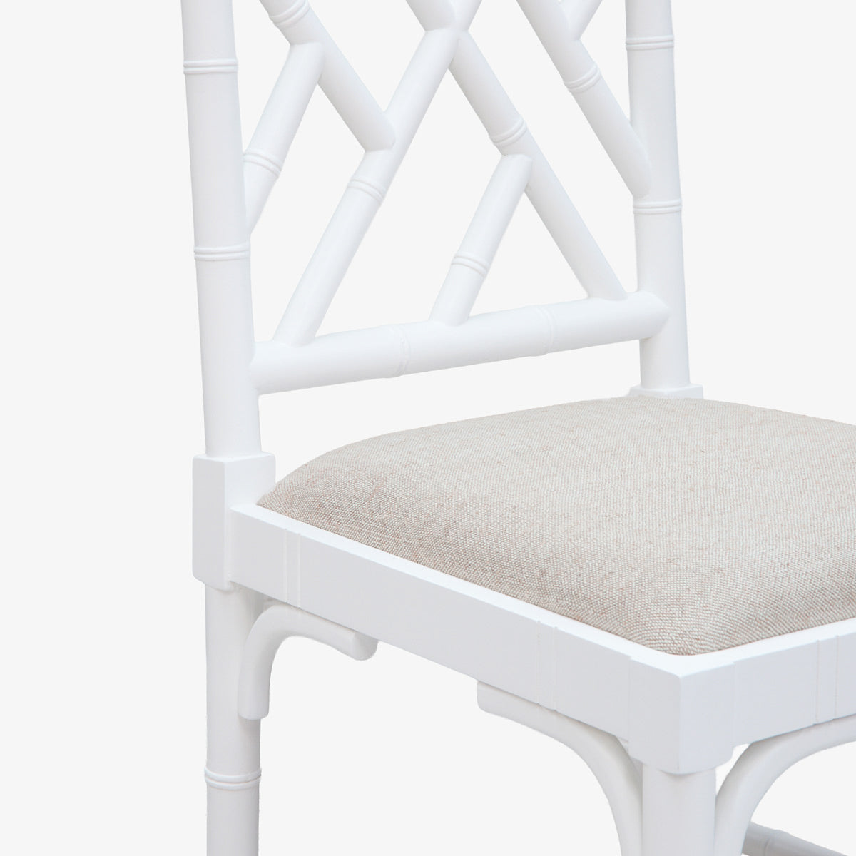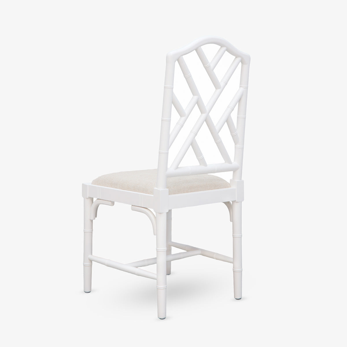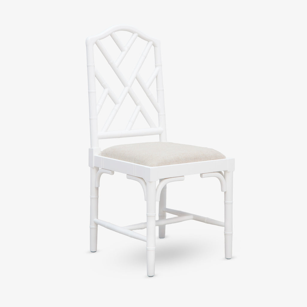 Elegant and full of character, the Indira Chinoiserie Dining Chair in smooth white brings timeless charm to your dining setting.