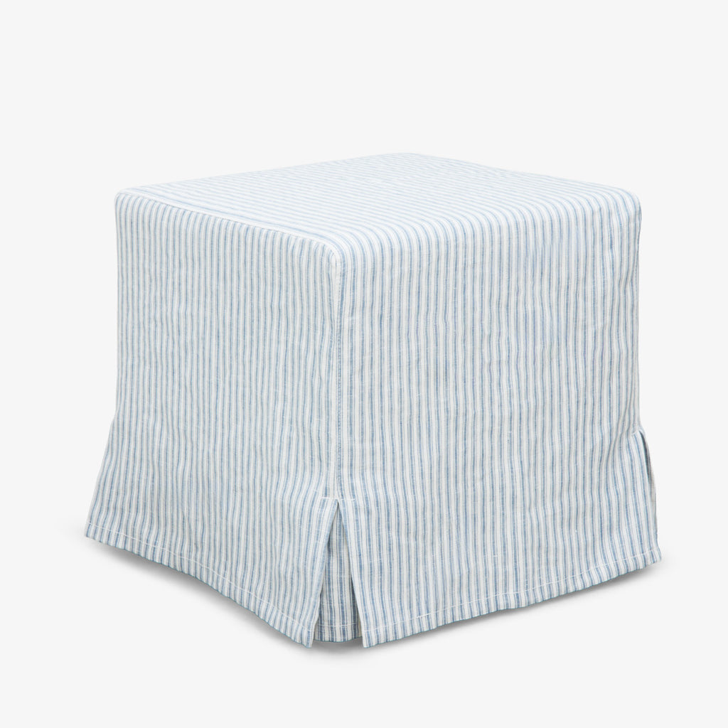 Add a tailored coastal touch to your living space with the Indira Cube Ottoman in Blue Stripe.
