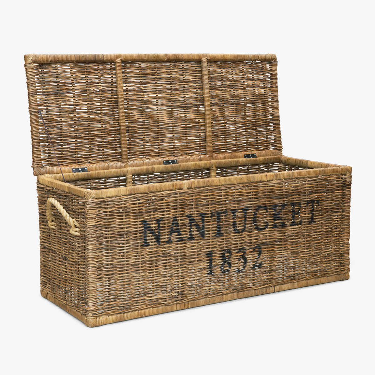 Add timeless coastal charm to your home with the Kubu Trunk in Nantucket design, a beautifully woven storage solution that combines functionality and style.
