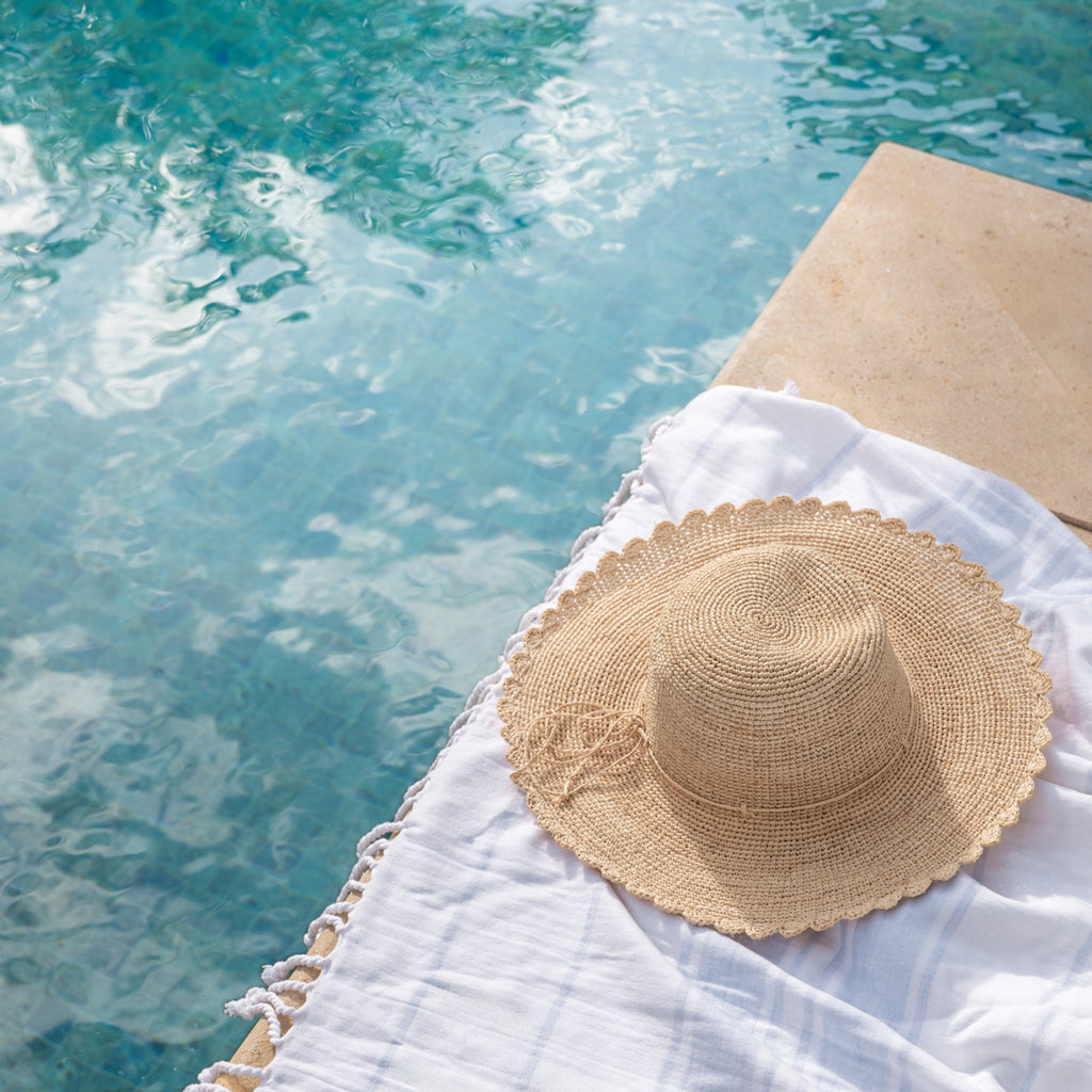 A stylish crochet raffia hat design with a statement scallop edging, beautifully handmade in a timeless natural tone. Great for relaxed and casual settings with high sun protection.