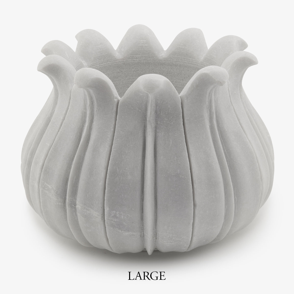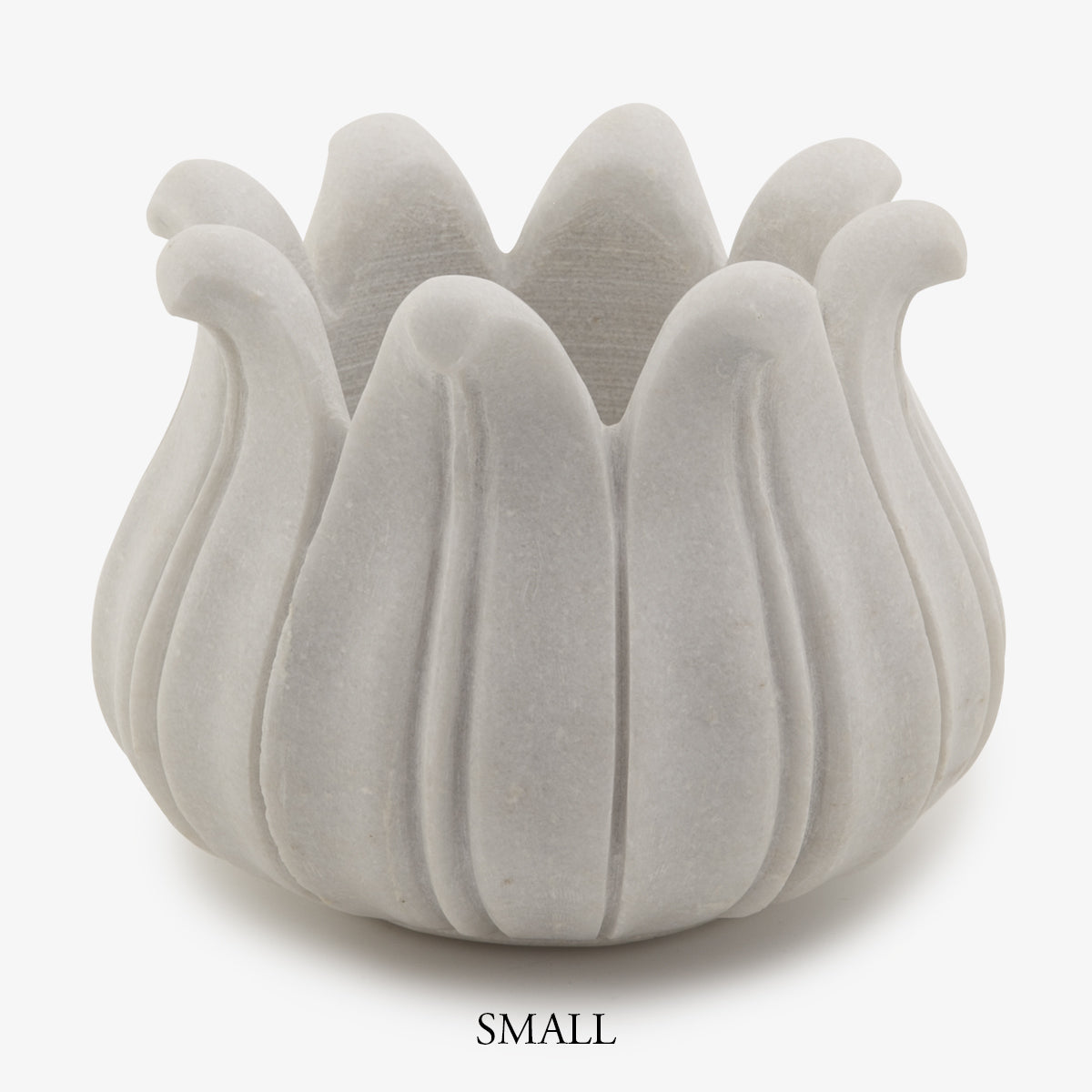 Carved marble petals reach up to form a stunning vase that is ideal for displaying artificial flowers.