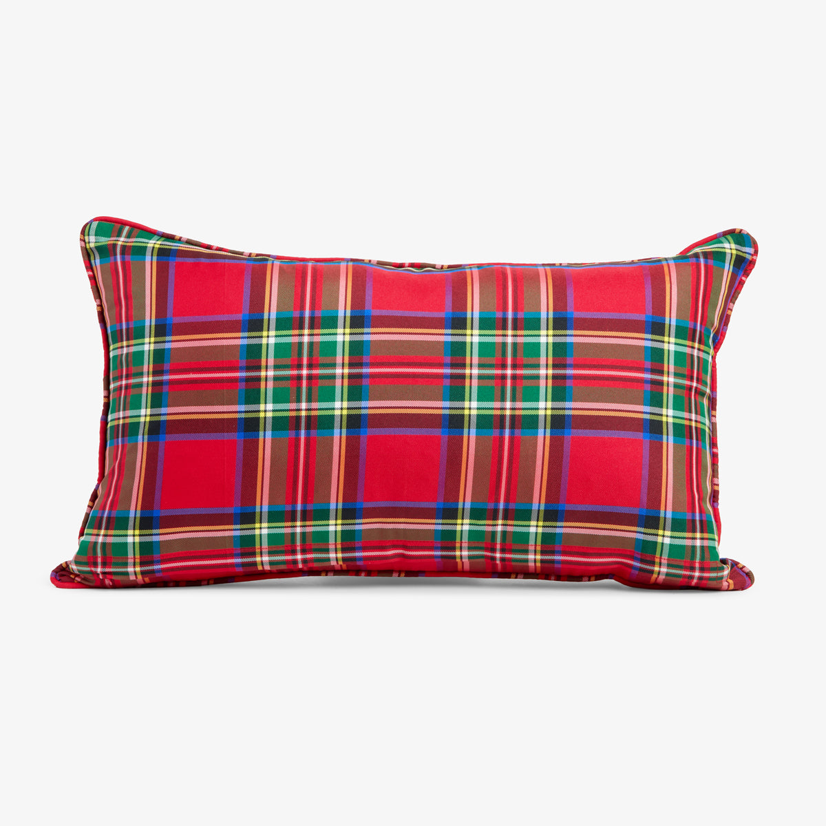 Crafted from soft cotton velvet, the front features embroidered "Merry Christmas" text in bright tartan lettering. The reverse is a classic red tartan pattern, offering two styling options in one. This rectangular cushion cover makes a cheerful statement on a sofa, armchair or bed, and pairs beautifully with other Christmas accent cushions and red tartan cushions. An easy way to bring warmth and personality to your holiday decor.