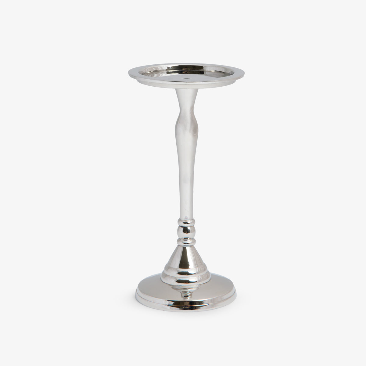 Crafted from durable aluminium, these candle holders feature a classic silhouette with a polished silver finish. Perfect for formal dining, festive styling, or everyday ambiance. Designed to fit pillar candles up to 7.5cm wide, they bring warmth and height to sideboards, consoles, or table centrepieces with effortless charm.