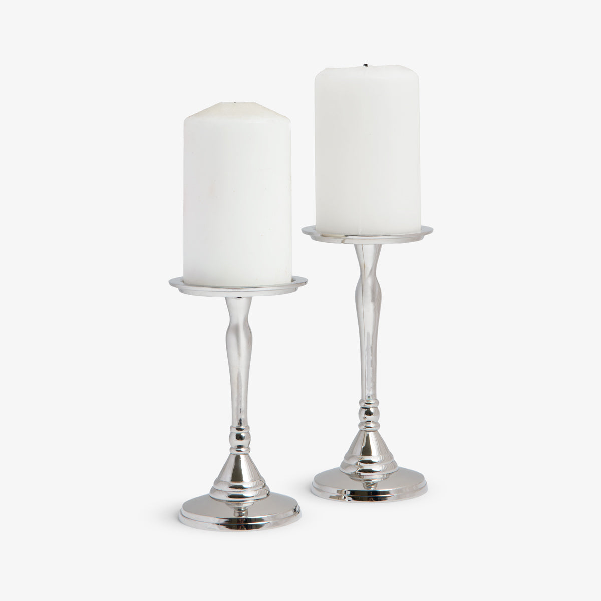 Metal Pillar Candle Holders (Silver)