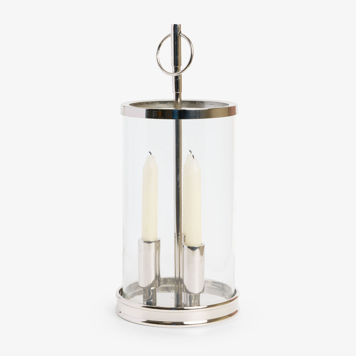 Featuring a clear glass cylinder paired with a polished nickel frame, this piece offers a clean, timeless silhouette that suits both contemporary and classic interiors.