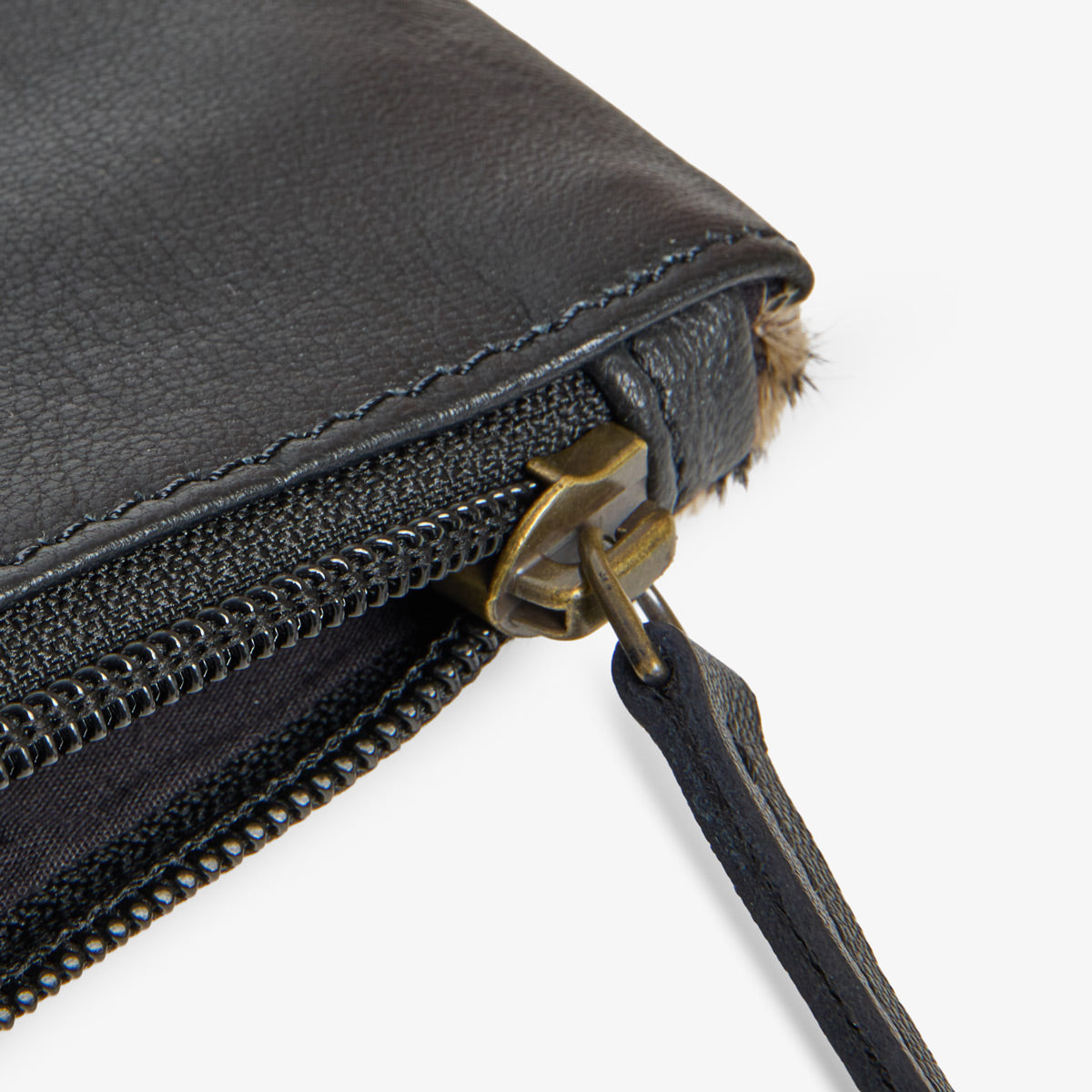 Featuring a striking pebble-inspired print, this elegant pouch is finished with a smooth black leather wrist strap and a sturdy zip closure for added functionality. Its compact silhouette makes it perfect for carrying essentials, whether styled on its own or slipped into a larger tote. Versatile and eye-catching, this clutch complements a variety of outfits and décor-inspired styles, from natural coastal tones to timeless monochrome. A sophisticated accessory with lasting appeal.