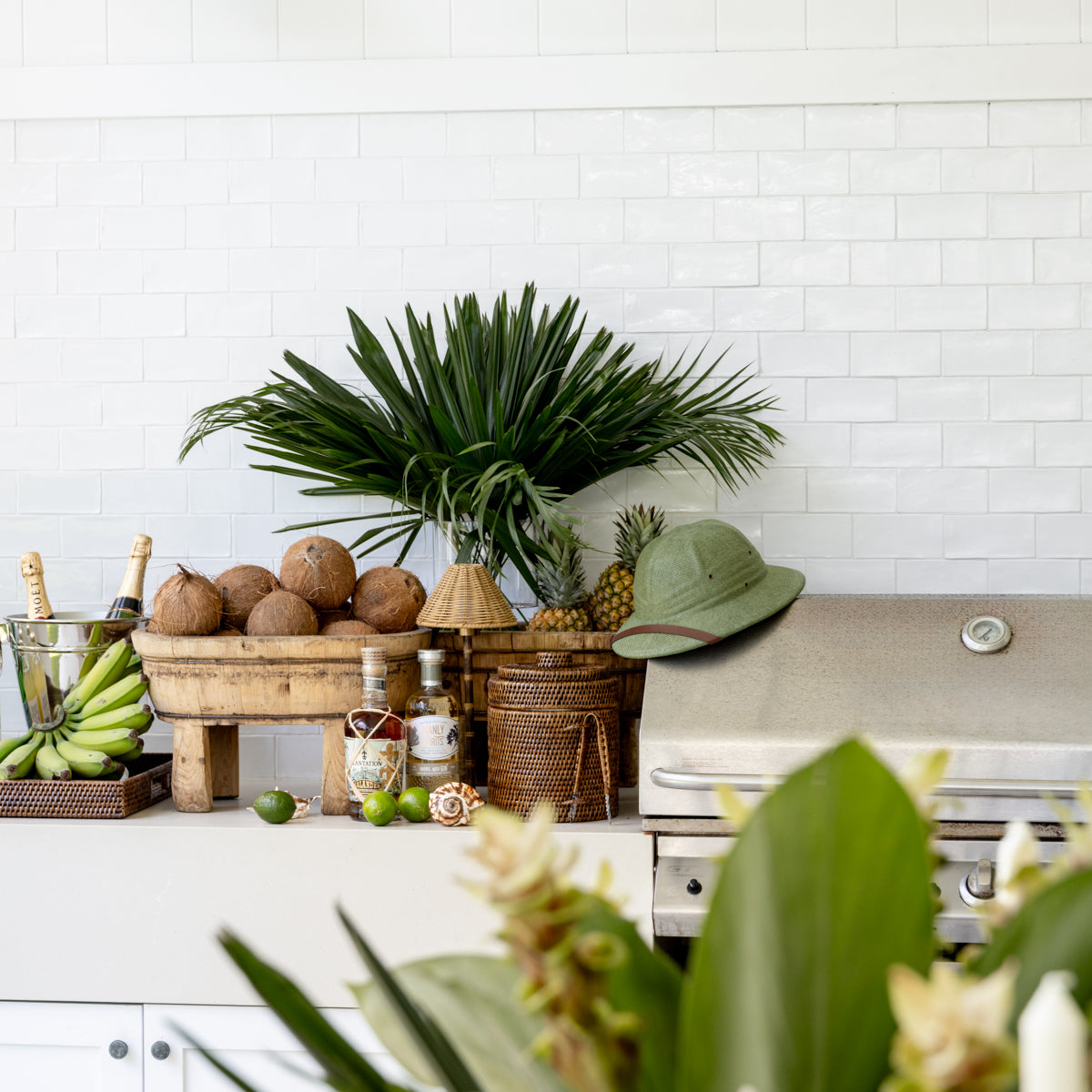 No home bar is complete without a handsome ice bucket. Made from natural rattan with a white plastic insert, this high quality and classic cooler comes with matching serrated tongs for perfect grip.