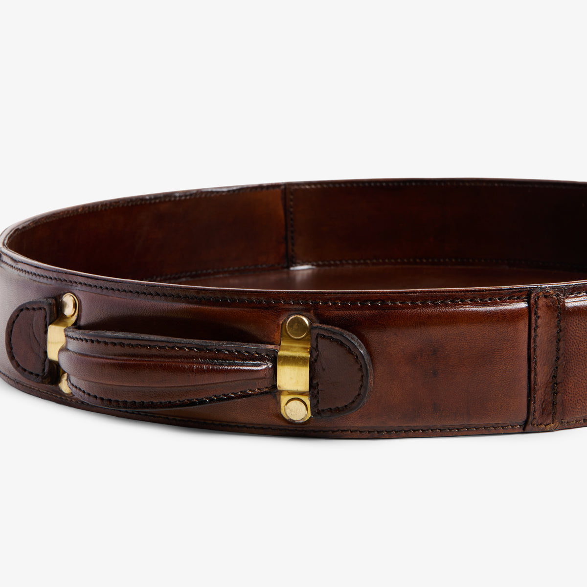 Ideal for serving drinks, presenting hors d’oeuvres, or organising accessories, these versatile trays bring an elevated touch to any table, bar, or console. The sturdy leather construction ensures durability, while the polished metal accents lend a refined contrast that enhances their classic character.