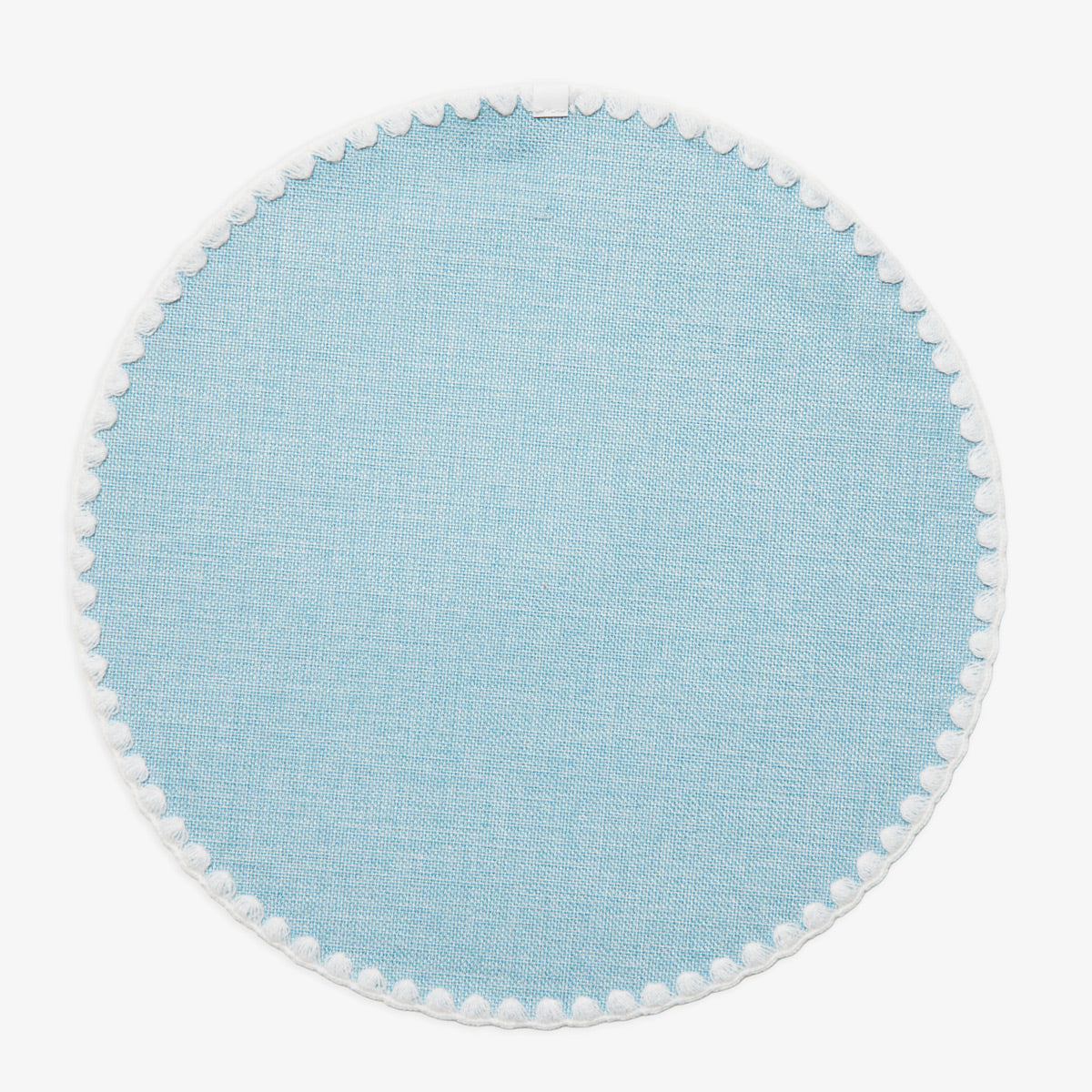 Freshen up your table setting with the soft blue tones of our Round Placemat With White Edging.