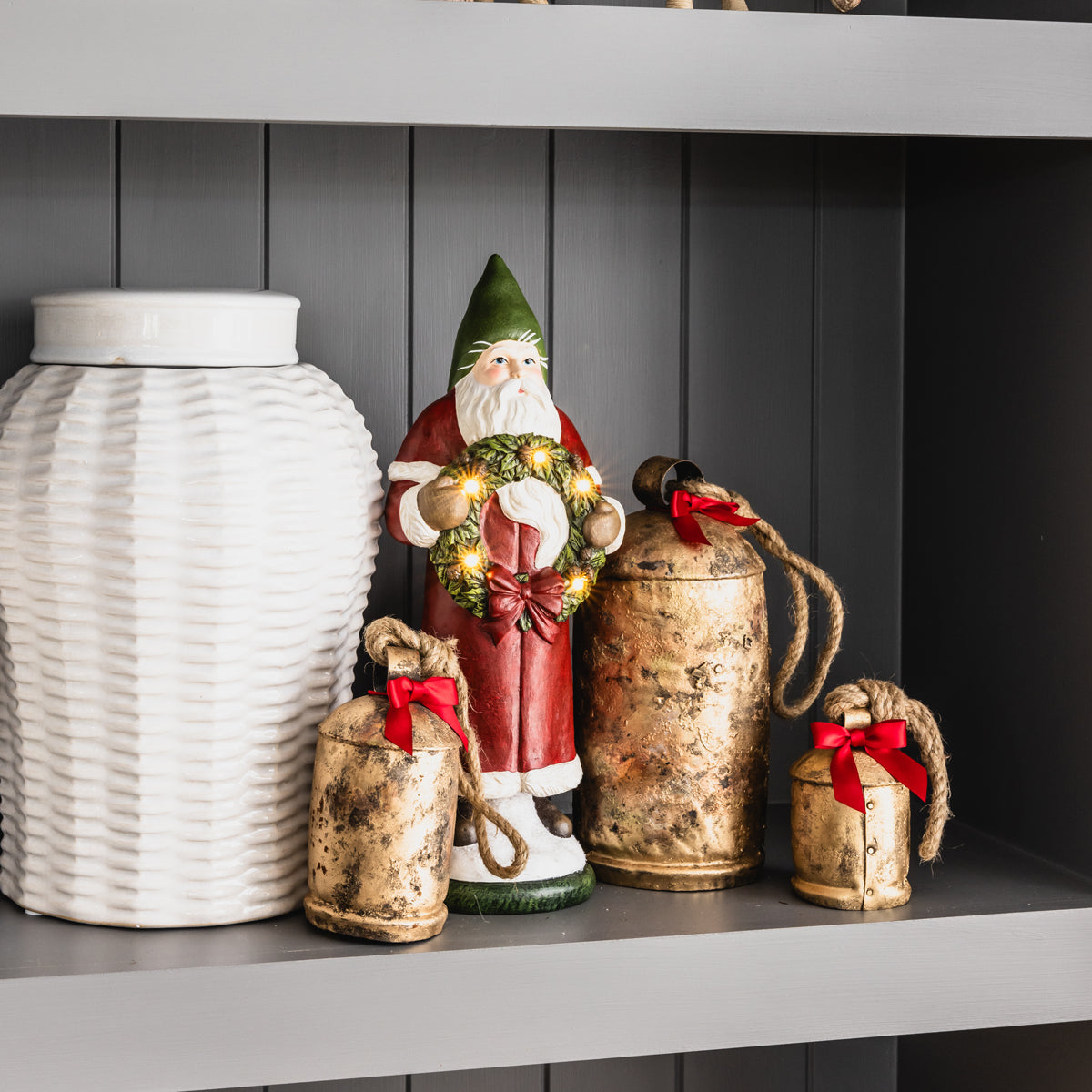 Let the warm glow of the wreath in Santa's hand transform your Christmas styling into a fanciful winter dreamland.