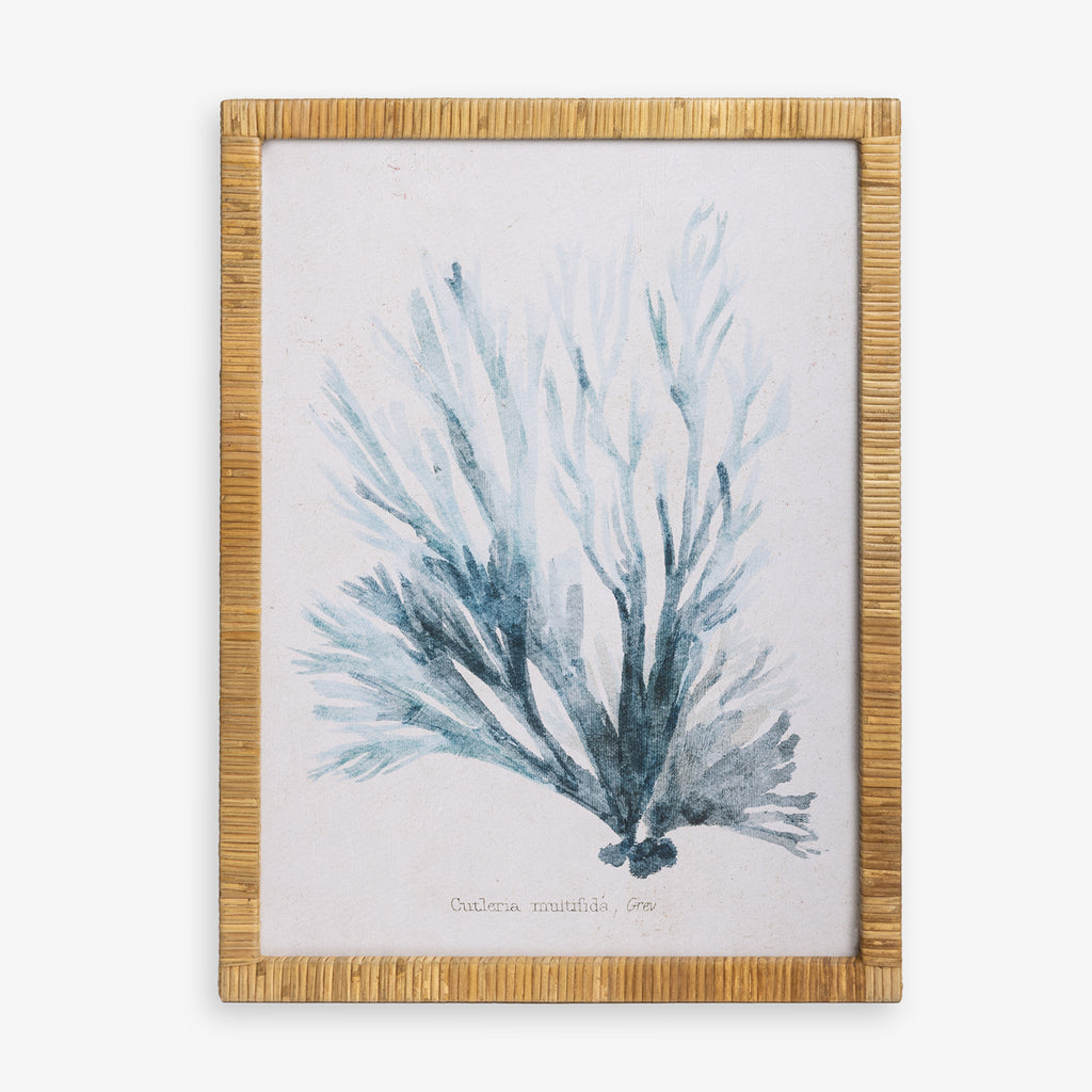 Framed in rattan and finished under glass, this artwork adds organic elegance and textural depth to your wall. Ideal for beachside homes or ocean-inspired interiors, it pairs beautifully with other seaweed or coral prints for a refined coastal gallery effect.
