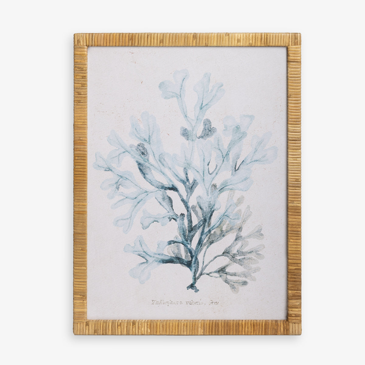 Framed under glass in a warm-toned rattan frame, this coastal artwork brings organic movement and subtle texture to your walls. Ideal for pairing with other framed seaweed prints, it adds a natural sense of calm to beachside, modern coastal, or neutral interiors.