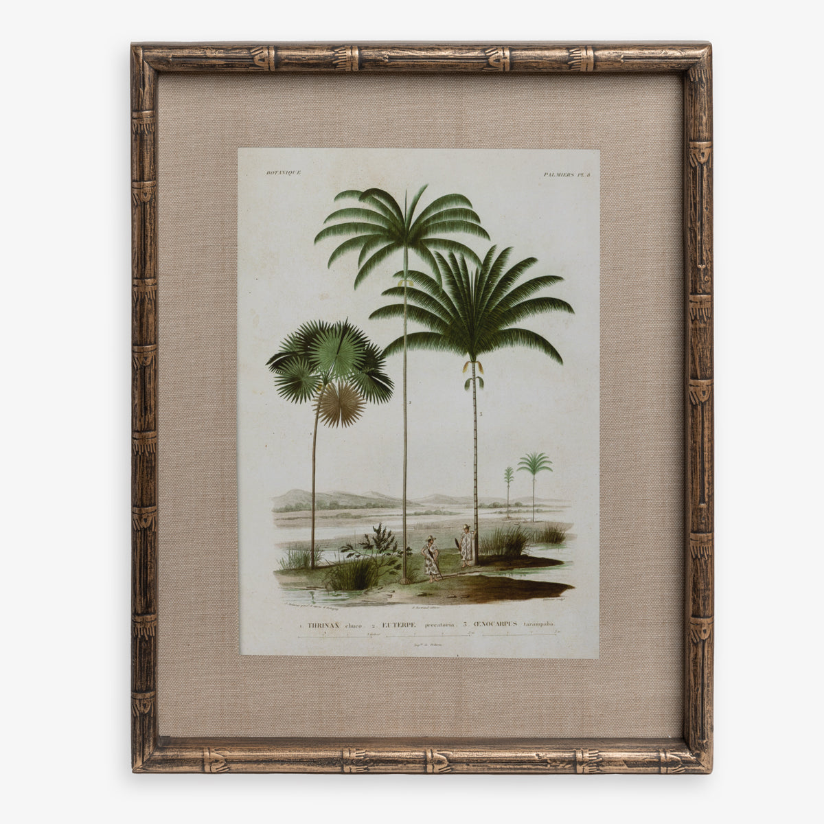 Set under glass in a bamboo-look frame with a printed linen-style border, this framed artwork brings textural depth and soft tropical colour to your wall. Display it alone or alongside other vintage palm prints to create a harmonious, gallery-style arrangement.