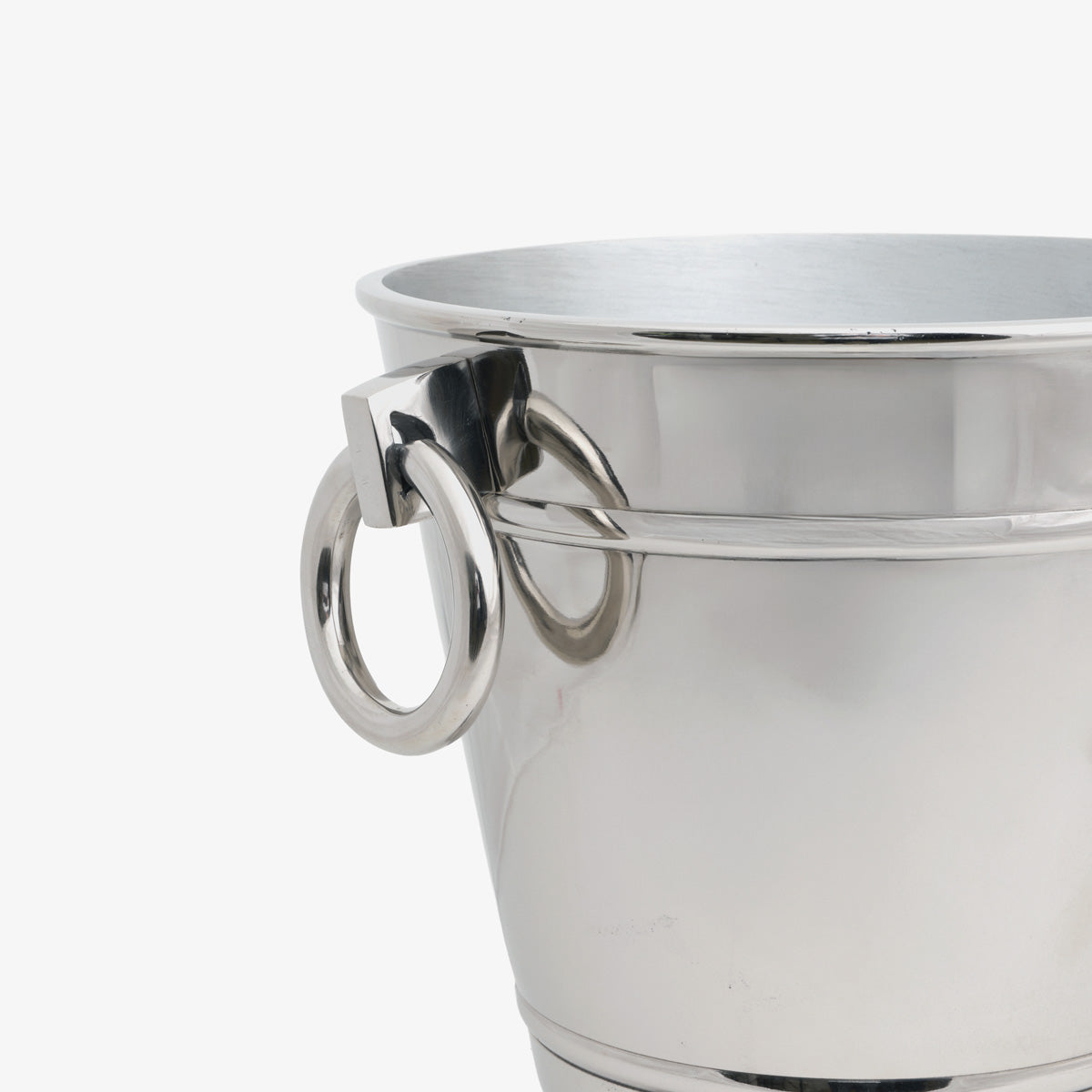 Refine your entertaining with the Wine Bucket with handles in silver, a timeless piece that combines functionality with polished style. Expertly crafted from aluminium with a shiny nickel finish, this bucket features elegant ring handles for easy carrying and a classic pedestal base for added stability.