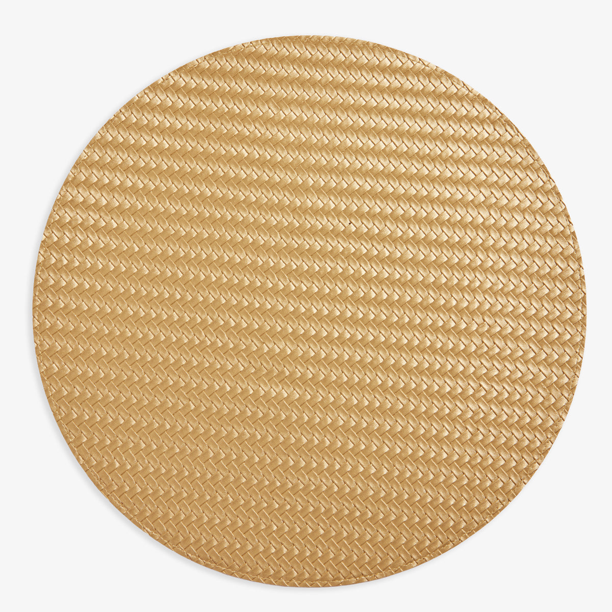 Set a glamorous tone for your dining table with this Woven Double Sided Round Placemat in gold and silver. Featuring a stylish basketweave pattern and a sleek, reversible design, this placemat offers both versatility and sophistication. Use the metallic gold side for a warm, festive glow or flip to the silver side for a cooler, contemporary look.