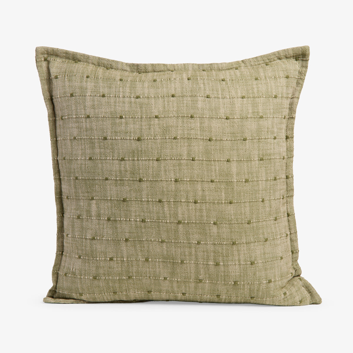 Featuring a subtle woven dot stripe and earthy green tone, it adds effortless sophistication to sofas, beds or armchairs. Made from breathable natural fibres and machine washable, this cushion cover pairs practicality with timeless style. Elevate your layering with this relaxed yet refined accent piece.